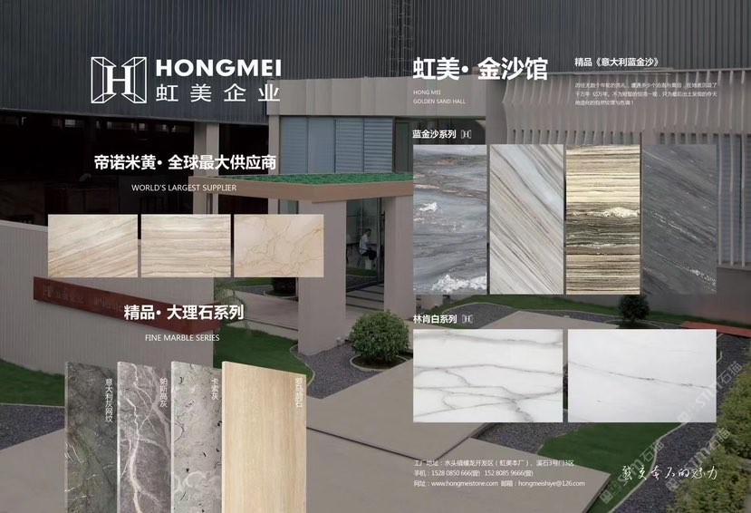 福建省南安市虹美石業(yè)有限公司是一家集大理石、礦山開采于一體的大型石材企業(yè)。本公司主要經(jīng)營:帝諾米黃、藍(lán)金沙系列、帕斯高灰、奧巴馬木紋、卡索灰、意大利灰網(wǎng)紋、意大利木紋、畢加索金、捷成礦奧特曼等。月產(chǎn)量六萬平方以上,水頭、云浮均有大量現(xiàn)貨,并長(zhǎng)期穩(wěn)定供應(yīng),我們將以質(zhì)的產(chǎn)品、良的服務(wù)和惠的價(jià)格與您合作,歡迎新老客戶惠顧。