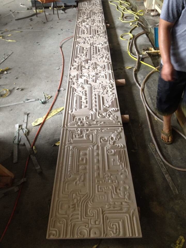 本公司位于石材之鄉(xiāng)一南安水頭。集自動噴砂(防荔枝面)數控雕刻、手工雕刻、石材噴砂工藝、高壓水沖、電視背景、異形線條等加工。