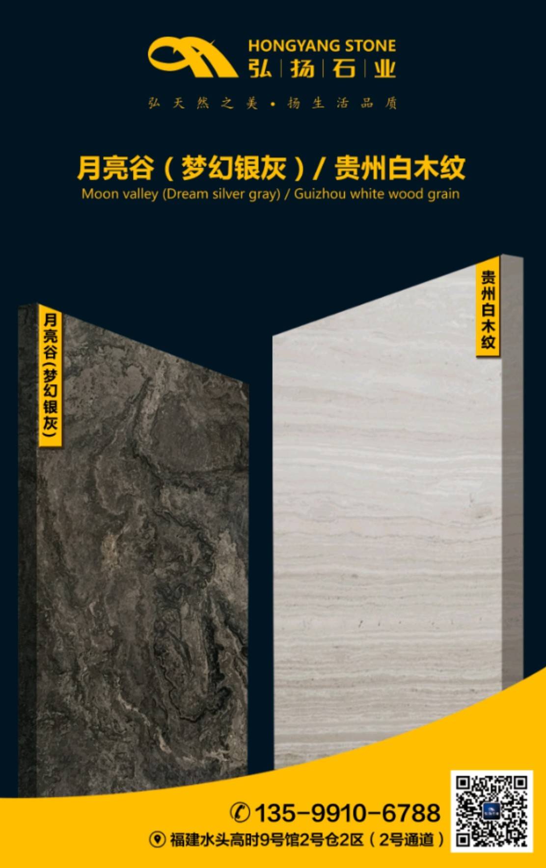 【弘揚(yáng)石業(yè)】主營:貴州白木紋(各種礦口)、月亮谷(夢(mèng)幻銀灰)。大量現(xiàn)板、荒料、承接工程單,歡迎新老顧客上門選購!地址:福山工業(yè)區(qū)今典大板市場2號(hào)門C區(qū)