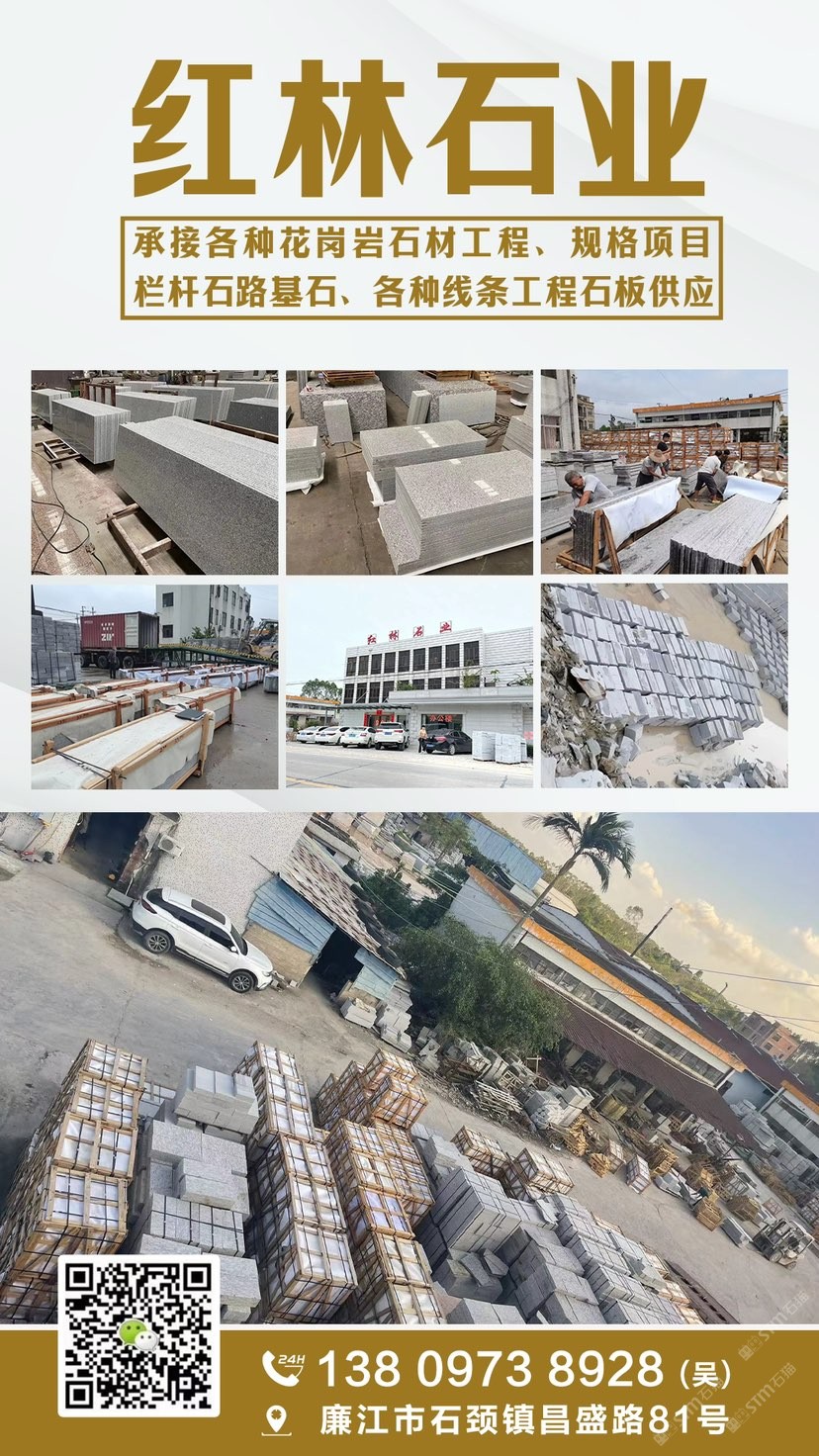 紅林石材廠位于廣東省廉江市石材工業(yè)園區(qū),擁用大型礦山資源,主要出產(chǎn)國(guó)內(nèi)知名品種如工:芝麻白、海浪花、芝麻灰,楓葉紅等花崗巖石材,我廠主要做各種規(guī)格臺(tái)板、地板磚、荒料石、石材加工、風(fēng)景石、園林石、觀賞石、招牌石、門牌石、陽(yáng)臺(tái)花瓶、欄桿、風(fēng)水球、石桌石凳等工藝加工及別墅精裝設(shè)計(jì)。另外可根據(jù)用戶需要進(jìn)行各種異形材加工,產(chǎn)品銷往全國(guó)各地。本廠具有長(zhǎng)期加工經(jīng)驗(yàn),質(zhì)量可靠。公司秉承“以誠(chéng)信為根本,以質(zhì)量為生存”的經(jīng)營(yíng)理念,堅(jiān)持“客戶、互惠互利”的原則為廣大客戶提供優(yōu)質(zhì)的服務(wù)。歡迎廣大的新老用戶,前來(lái)洽談合作!
