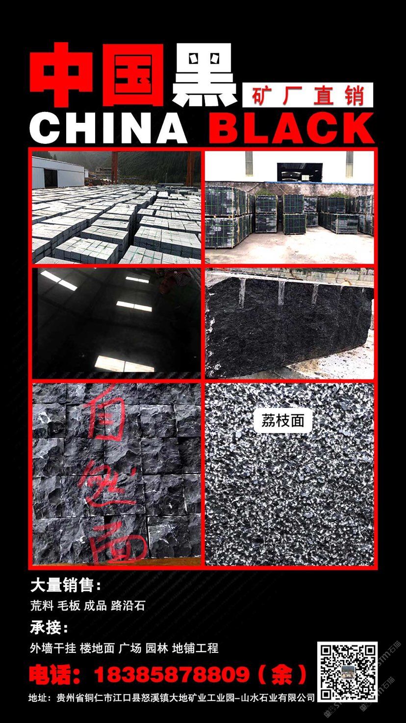 大地礦業(yè)-山水石業(yè)成立于2019年,注冊資金8000萬,位于貴州銅仁,是一家集礦石開采、開發(fā)、加工、銷售為一體的大型民營企業(yè)。 公司2010年開始開發(fā)石材,此石材命名為:“中國黑”?,F(xiàn)已取得采礦權并有3本采礦證,采礦面積4.65平方公里,擁有三千多畝開采權,年開采量達到10萬立方米。