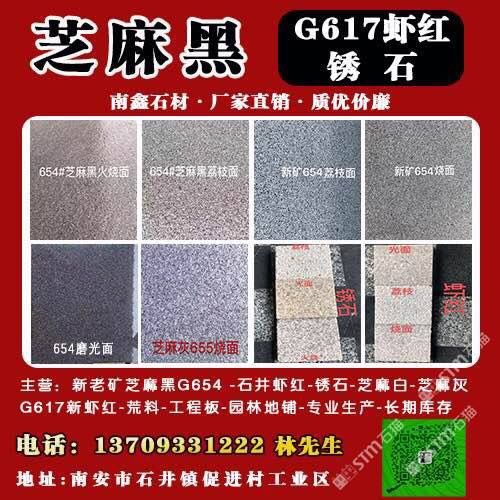 廠家直銷 新老礦芝麻黑、 G655芝麻灰、 G623芝麻白 617泉州紅 636溪東紅 黃銹石 蝦紅 火燒面 ,荔枝面,磨光面,路沿石,等……各種規(guī)格板材 及園林 地鋪石 工程板。 我們將竭誠為您服務(wù)?。◤S礦直銷)