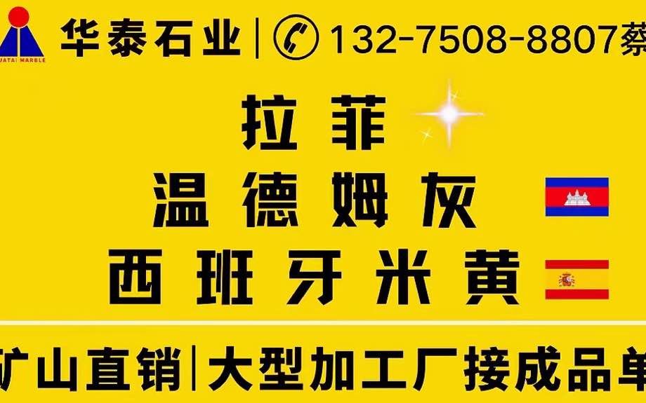 華泰石業(yè)專訂做萬達(dá),華為,恒大,泰禾等商業(yè)地產(chǎn)專用【西班牙米黃????】【溫德姆灰????】【拉菲?】一家集礦山開采,石材加工,工程建設(shè)為一體的綜合性石材企業(yè)。經(jīng)過近二十年的砥礪奮進(jìn),敬業(yè)實(shí)干,華泰人創(chuàng)造了輝煌,譜寫了“愛拼才會(huì)贏”的壯麗篇章。
