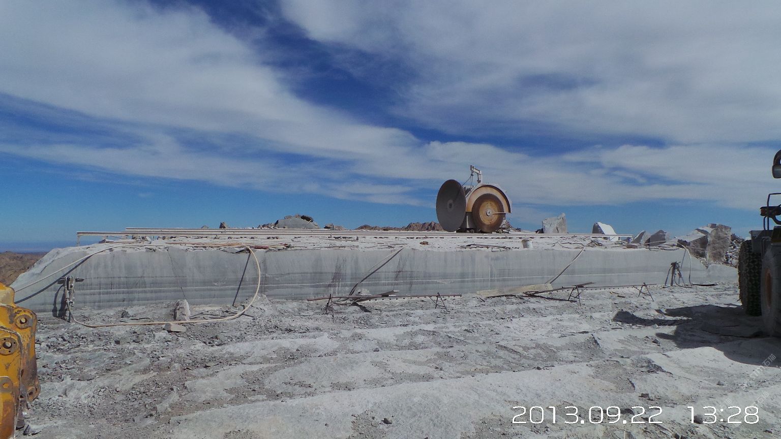 新疆煒通石材工貿(mào)有限責(zé)任公司成立于2007年,是一家集礦山開采、板材加工為一體的石材公司。公司擁有的奧莫爾塔格礦山位于哈密市東北方向,直線距離約160千米,礦區(qū)面積1.25平方千米,資源儲(chǔ)量約800萬立方米。礦山擁有一批優(yōu)秀的管理人員、技術(shù)精湛的開采隊(duì)伍和先進(jìn)的機(jī)械設(shè)備,現(xiàn)有柴油發(fā)電機(jī)組8臺(tái),濕式切石機(jī)6臺(tái),滿負(fù)荷生產(chǎn)規(guī)劃為每年5萬立方米。