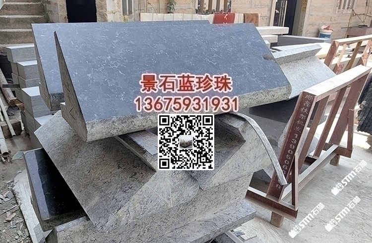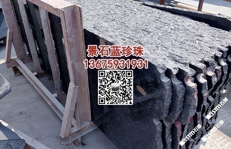 幻影藍(lán)幕墻干掛板水池水景石材定制印度黑金沙藍(lán)珍珠