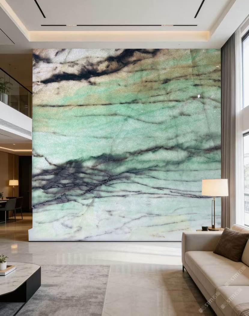 以白綠有基底,山水紋理,搭配燈光效果更好