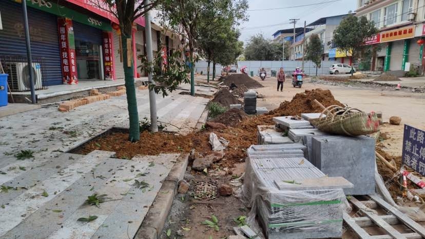 市政道路,芝麻灰花崗石荔枝面。