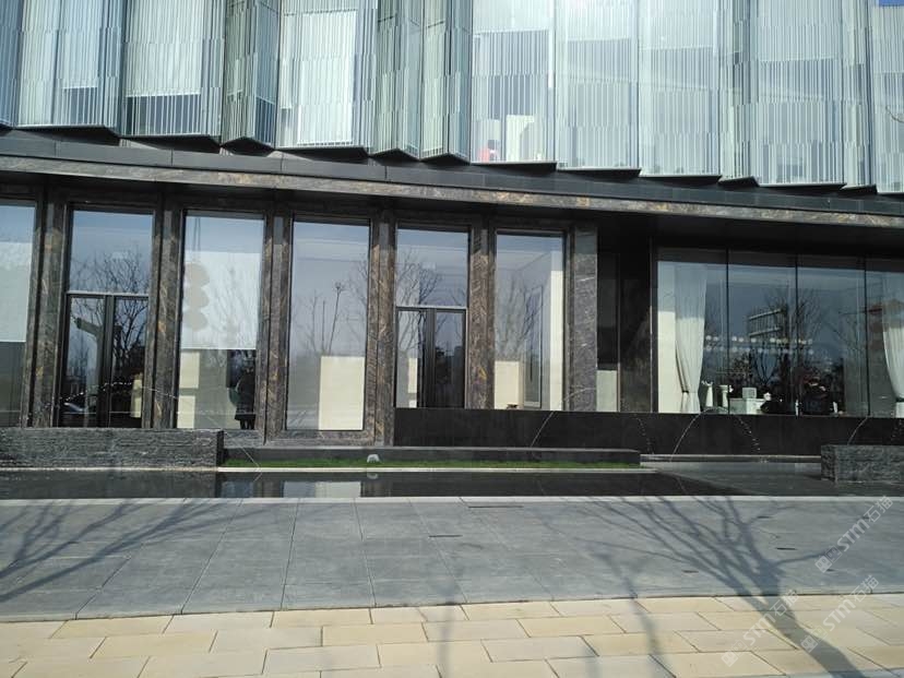 發(fā)布信息: 此項目位于西安新區(qū),設(shè)計師很有創(chuàng)意的使用寶格麗金這個產(chǎn)品用作外墻材料。整體風(fēng)格簡約而不簡單,天然石材的深色帶藍(lán)和金線突顯售樓部的高檔與厚重。