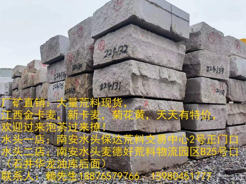發(fā)布信息: 廠礦直銷:大量荒料現(xiàn)貨,江西金卡麥,新卡麥,菊花黃,天天有特價,歡迎過來泡茶過來撩!