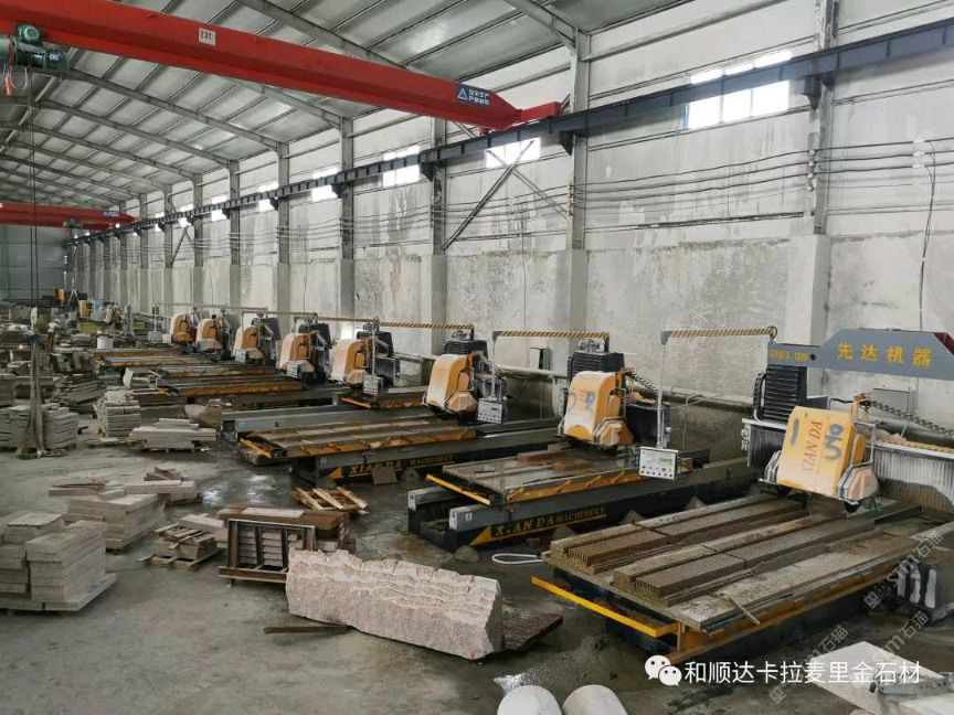 和順達第三分廠成立于2019年,占地面積50畝,位于奇臺縣奇臺縣閩奇石材工業(yè)園區(qū),目前車間技術(shù)工人80名,擁有大切鋸12臺,中切機、紅外線切機15臺,異形仿形機8臺,繩鋸、桶鋸、柱座柱帽、花瓶欄桿機、龍門機、大型磨光機、倒邊機、荔枝面機若干。