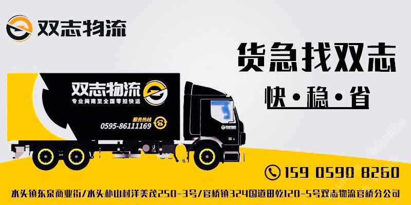 發(fā)布信息: 水頭【雙志物流】專注全國石材瓷磚配件零擔(dān)直達(dá)快運(yùn)及閩南地區(qū)同城零擔(dān)配送一日達(dá),現(xiàn)已加盟順豐集團(tuán)順心平臺各種零擔(dān)貨物10公斤起收,電商平臺入倉,大件送貨上樓,全國無盲區(qū),十六年專業(yè)值得您的托付! ?全國統(tǒng)一服務(wù)熱線:0595-86111169手機(jī)微信同號:13505987769/15905908260李(女士) #水頭雙志物流專業(yè)福建閩南至全國整車零擔(dān)倉儲(chǔ)配送等#