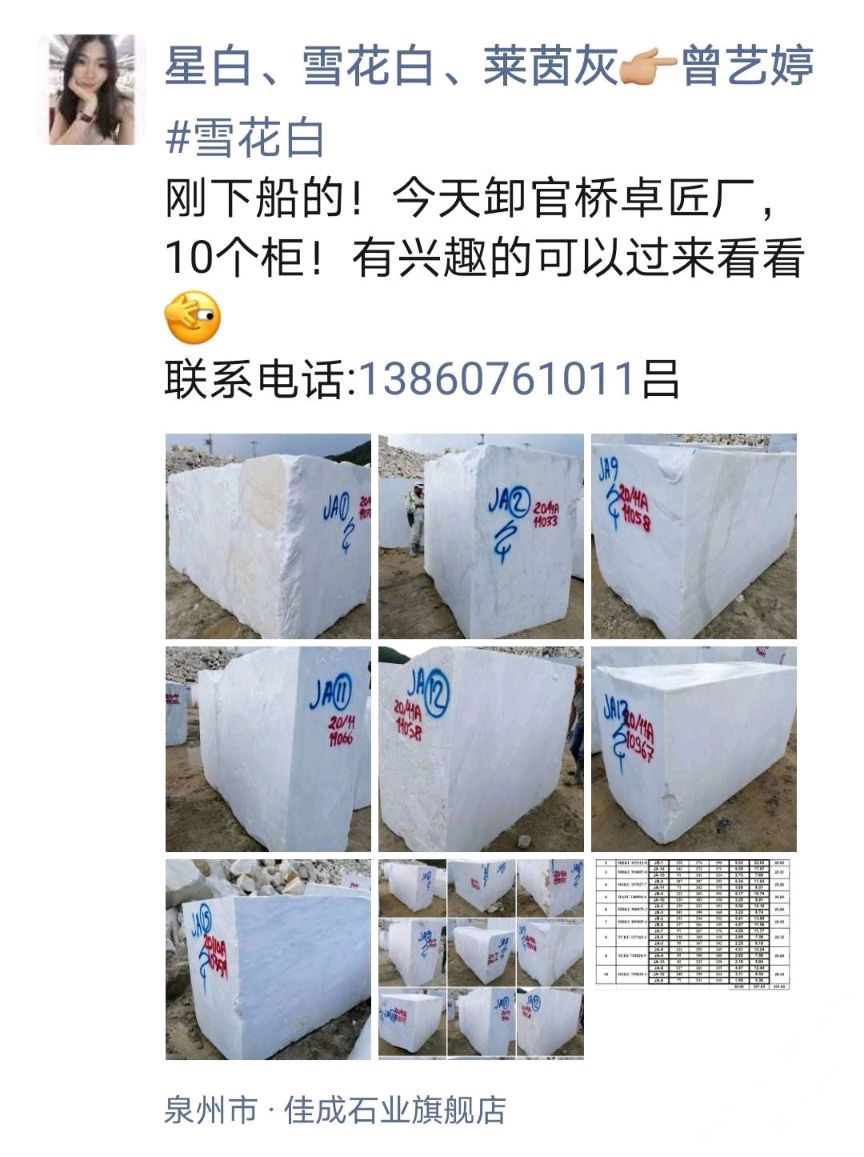 商圈 > 大理石 > 【 雪 花 白 】到柜