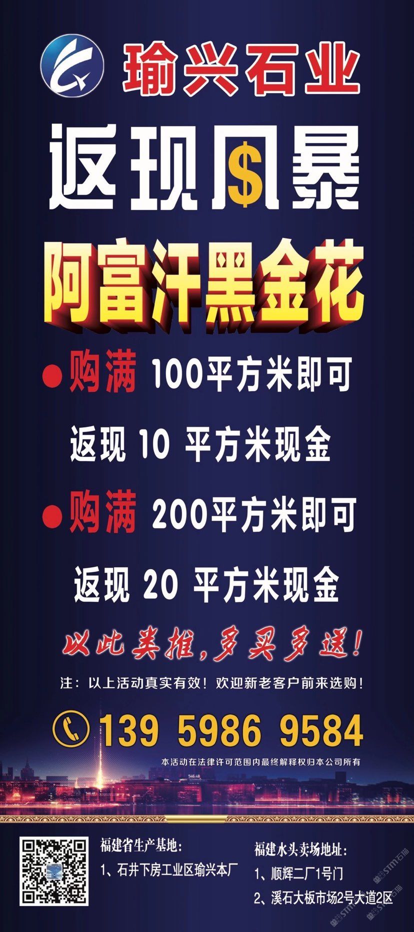 發(fā)布信息: 阿富汗黑金花優(yōu)惠活動(dòng)開(kāi)啟! 福利大放送……工程、家裝必備 ………買(mǎi)越多送越多……… 《瑜興石業(yè)》