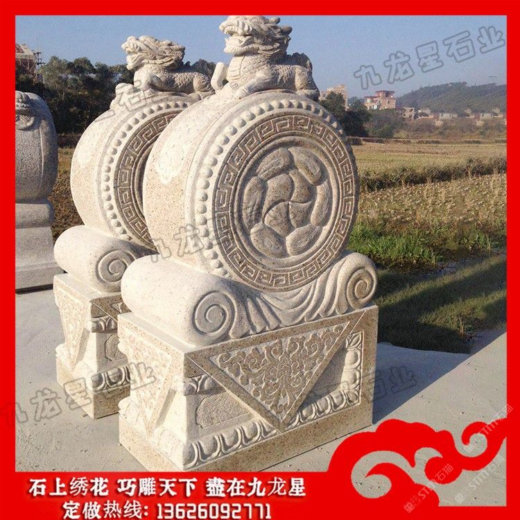 發(fā)布信息: 石雕圓形抱鼓石 門墩抱鼓石圖片及價(jià)格——九龍星石業(yè)。 石雕圓形抱鼓石的方圓有著不同的寓意,在古代,方形的門墩多為文官使用,圓形的門墩多為武官使用。門墩借助人物、草木、動物、工具、寓言、幾何圖案,石頭抱鼓石上面的瑞獸表達(dá)了四合院的建筑者們希望長壽、富貴、驅(qū)魔、夫妻美滿、家族興旺的美好心愿。獅和世諧音,雕九只獅子的圖案是九世同居,表示合家團(tuán)聚、同堂和睦的祝愿。 石雕圓形抱鼓石上面的瑞獸有獅子、麒麟、大象等靈獸。古代,不同地位官階等級的門戶擺放的抱鼓門石是不同的,文官用書箱形、武官用獸吻形,而古代住所高管門前門墩石的石獅子等靈獸一般都比較大,象征著地位和財(cái)富。