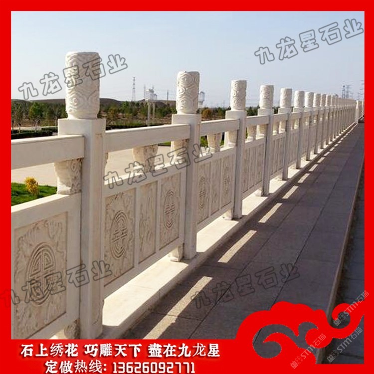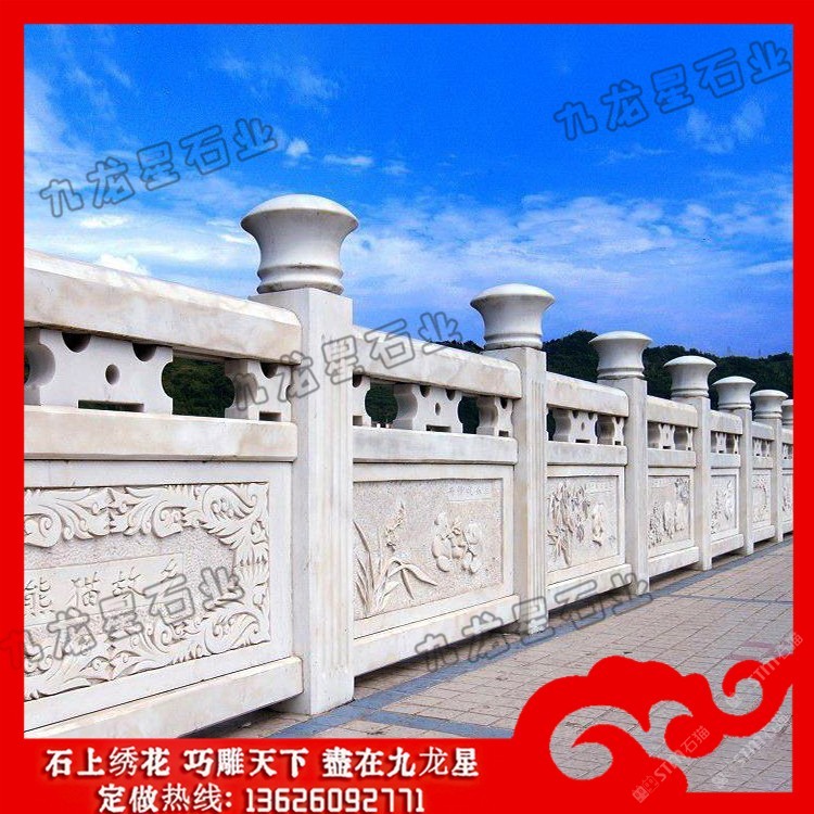 發(fā)布信息: 高速公路石雕護(hù)欄 花崗石欄桿加工廠家——九龍星石業(yè)。 花崗石欄桿加工廠家在設(shè)計(jì)的時(shí)候要規(guī)定尺寸,花崗巖石材的尺寸和規(guī)模決定了它的價(jià)格標(biāo)準(zhǔn) ,石欄桿廠家在加工欄桿的時(shí)候根據(jù)尺寸大小確定好花崗巖石欄桿的形狀,再將花崗 巖石欄桿制成不同的造型,這些造型目前可以分為歐式的、連續(xù)式的、寶瓶式的、簡(jiǎn) 易式的等等、這些造型可以的多樣性可以適用于任何場(chǎng)所中。 高速公路石雕護(hù)欄的制作造型采用橫檔以及花飾,石欄桿安裝的場(chǎng)所一般在河邊,護(hù)城河使用量 大,石欄桿制作雕刻亮點(diǎn)在于立桿的設(shè)計(jì),立桿的制作可以柱子成寶瓶柱或者花瓶柱 ,欄桿的制作根據(jù)不同地方的應(yīng)用在雕刻制作上的樣式上也不同。石欄桿的安裝在各 大建筑領(lǐng)域中應(yīng)用也很多,會(huì)有局部的鏤空形式,這種制作造型的石欄桿在景觀橋上 的使用頻率較多。 石雕欄桿作為橋上的扶手,主要是承擔(dān)兩個(gè)作用,一是便于游客手扶,二是防止行人 或者是機(jī)動(dòng)車(chē)墜入橋下,因?yàn)樗淖饔盟詮S家在制作的時(shí)候要按照對(duì)應(yīng)要求來(lái)進(jìn)行 制作。因?yàn)槿藗冏咴跇蛏系臅r(shí)候會(huì)手扶石雕欄桿,所以這就要求欄桿的表面要打磨的 相對(duì)舒適。