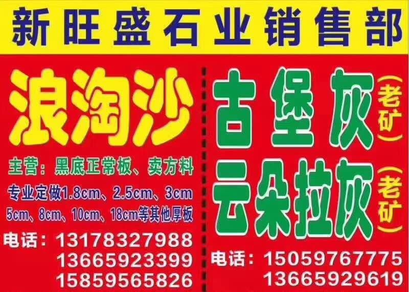新旺盛石業(yè) 聯(lián)系人:曾(花崗巖)    131****7988 查看 手機號碼:無 主營范圍: 大板批發(fā)、 企業(yè)地址:福建泉州南安市G1502(壽溪特大橋)東升石材城4通道D12-2