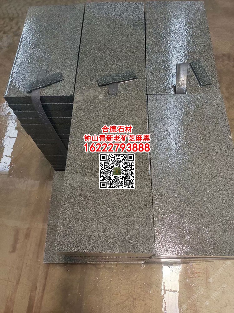 鐘山青石材工程板廣西芝麻黑火燒面荔枝面金點(diǎn)綠花崗巖