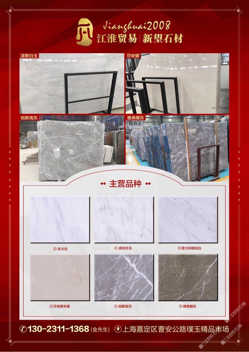 江淮貿(mào)易 聯(lián)系人:金先生    130****1368 查看 130****1368 查看 主營范圍: 大板批發(fā)、大理石加工、異型加工、荒料、石材工藝品、 企業(yè)地址:上海上海嘉定區(qū)曹安公路璞玉精品市場