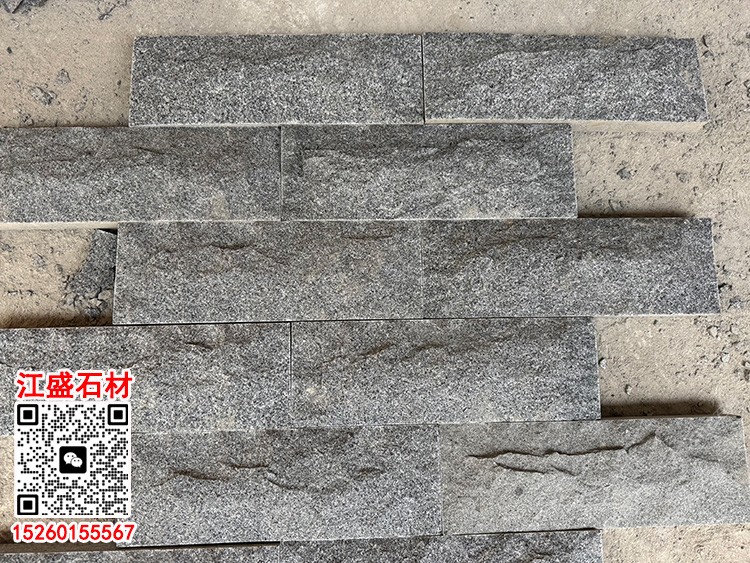 G654背景墻芝麻黑石材自然面蘑菇石流水石踢腳線條