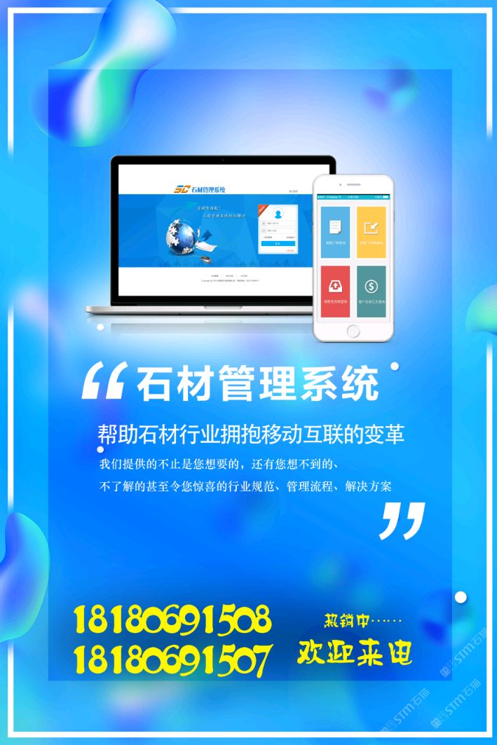 發(fā)布信息: 石材管理軟件,企業(yè)的管家。如果您還在為開單而煩惱,還在為統(tǒng)計(jì)而煩惱,還在為沒有一套系統(tǒng)智能管理而煩惱,請(qǐng)聯(lián)系我18180691508
