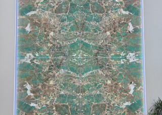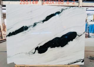 熊貓白奢石餐桌 天然水墨