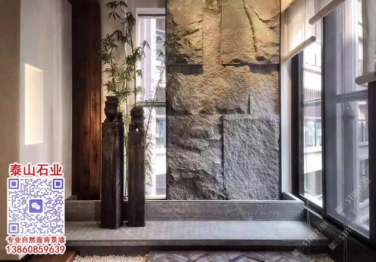 自然面背景墻-芝麻黑蘑菇石-滾磨石仿古石